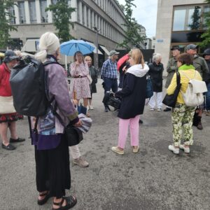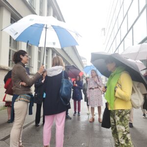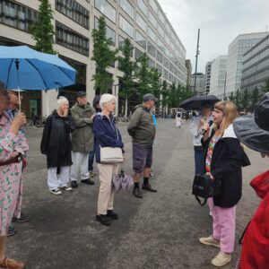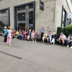 Die Führung im Juli war gut besucht und trotz leichtem Regen waren alle 21 TeilnehmerInnen hellauf begeistert. Ebenso am Freitag, 16. August 2024. Die Erwartungen von allen TeilnehmerInnen waren eigentlich sehr tief. Europaallee? Eine Führung? Da läuft man doch eigentlich einfach durch und was ist da so besonders?