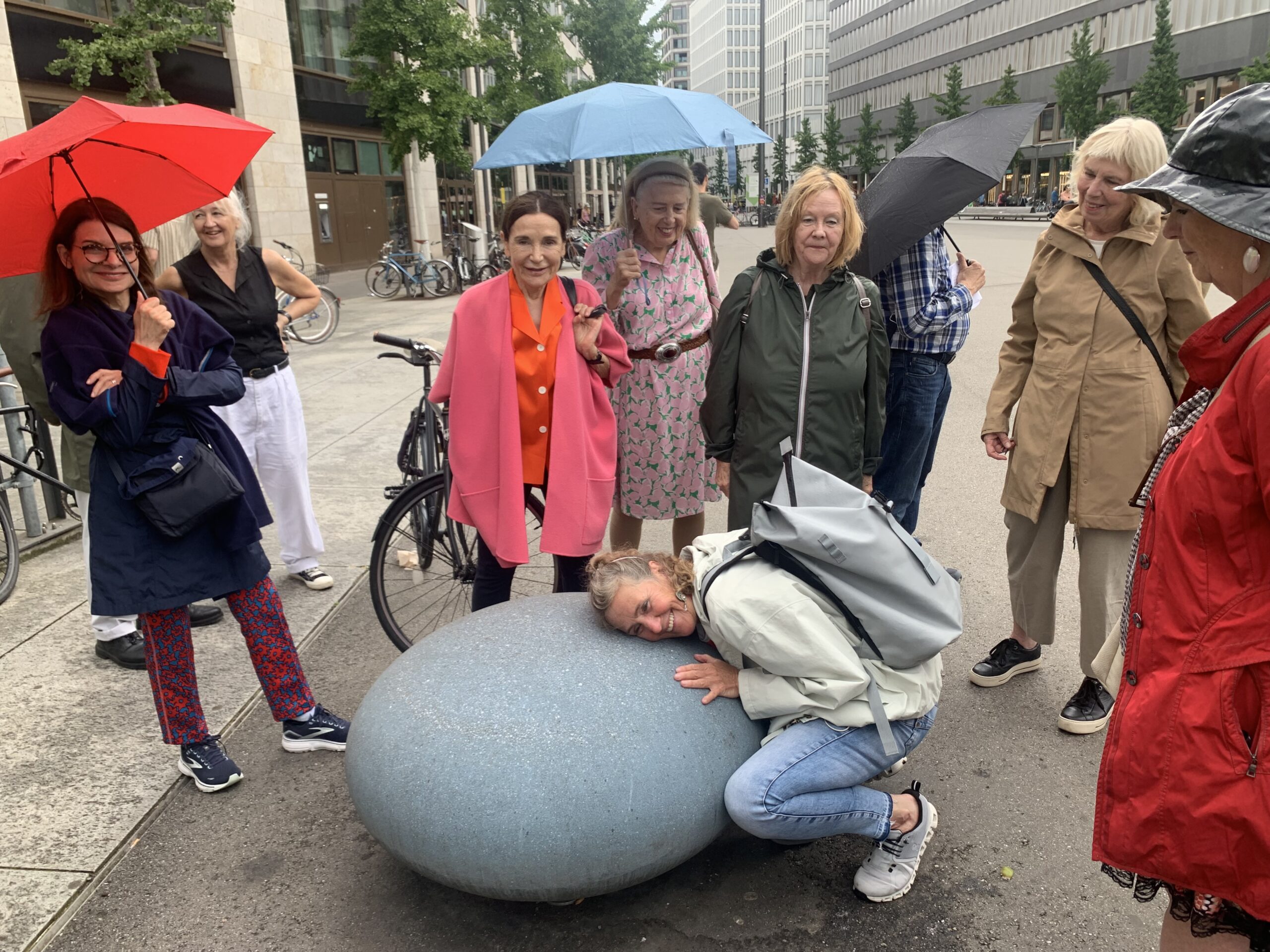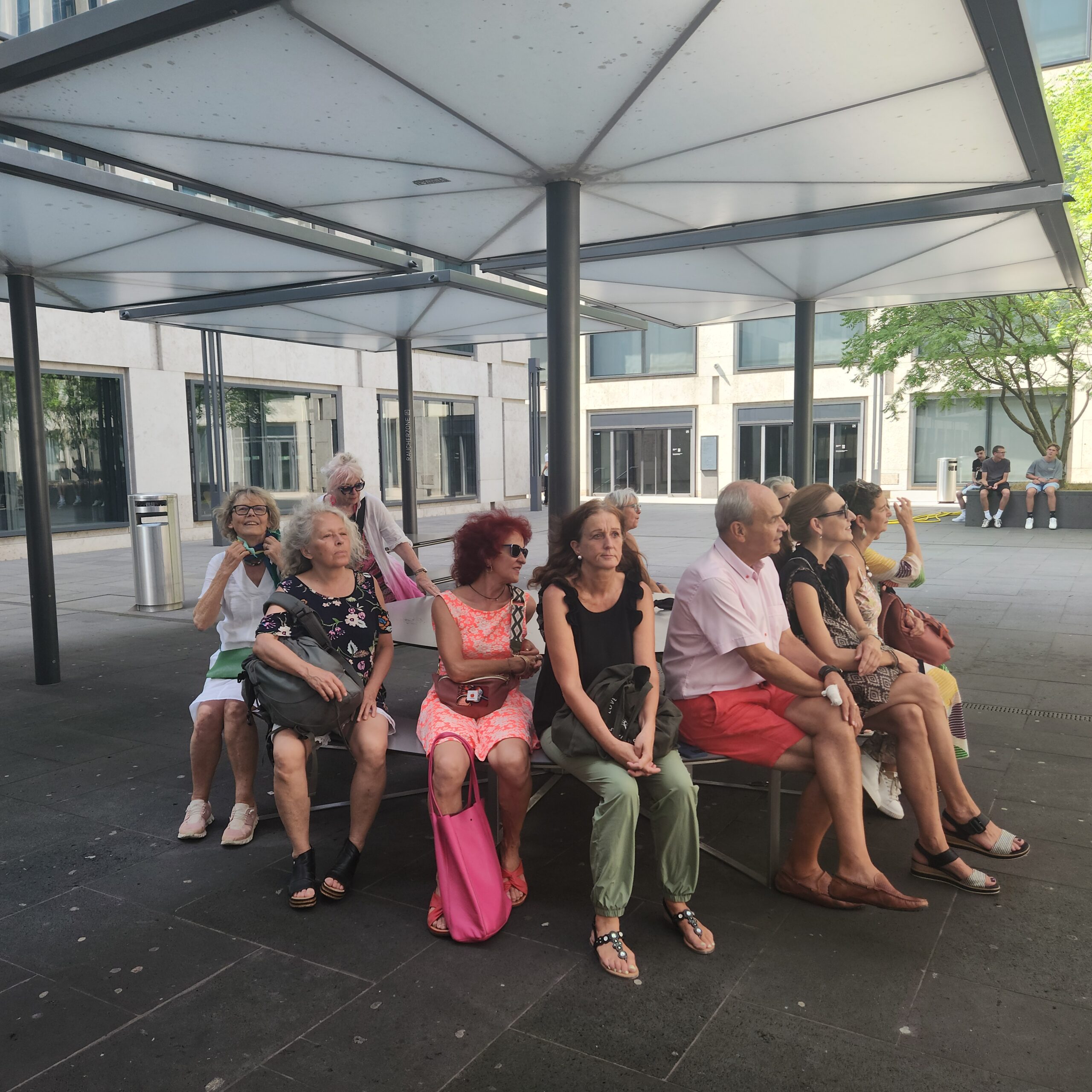 Alle Beteiligten waren total von den Socken, was die Europaallee alles hergibt und wo man sonst einfach so vorbeiläuft. Kaum einer kennt die vielen schönen Innenhöfe mit tollen Wellnessinseln und Gastronomieangebot. Wer kennt die öffentliche Kunst in der pädagogischen Hochschule und die Flüstersteine, die eigentlich mal drei waren, 15 sein sollten und von denen jetzt nur noch einer zu finden ist? Und dieser eine hat das Flüstern leider auch aufgegeben... Besonders interessiert haben uns natürlich auch die Bausünden. Am 16. August erfuhren wir am eigenen Leid, wie sehr der Asphalt in der Allee aufheizt und die Ginkos kaum Schatten spenden. Apropos Ginko: dass der Ginko bis zur Pubertät sein Geschlecht ändern kann und in der Europaallee eigentlich nur Männchen erlaubt sind, wer weiss das? Und warum?