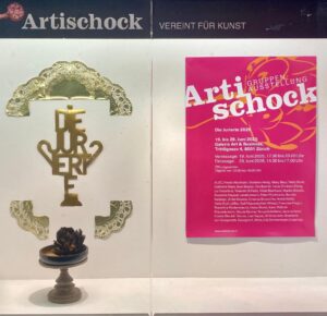 Artischock mietet zwei Vitrinen in der Fussgängerpassage am Bahnhof Küsnacht. Bis zu drei Wochen kann man sich dort gegen Anmeldung kostenlos zeigen.